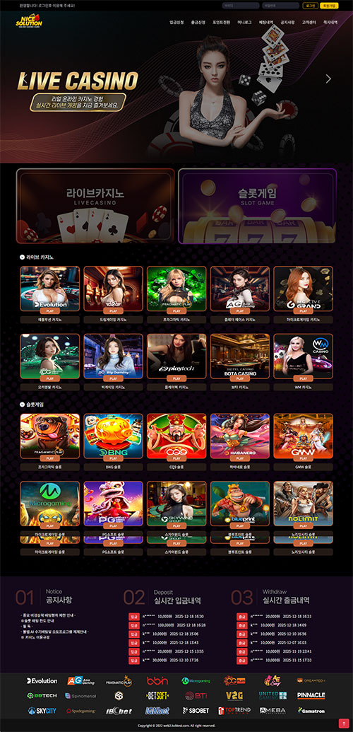 나이스카지노솔루션은 안정성과 전문성을 모두 갖춘 온라인카지노 솔루션 업체 입니다.